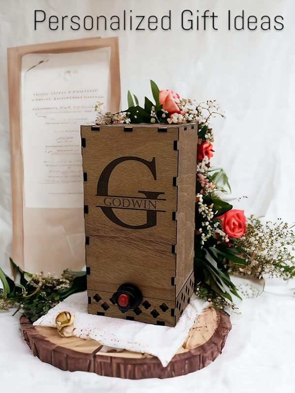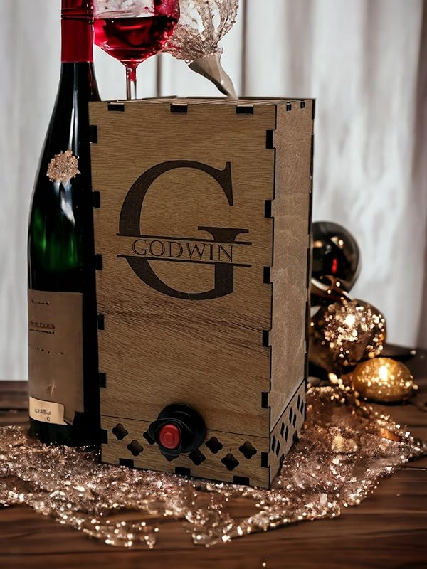 Personalized Wine Box for 3L Boxed Wine | Engraved Caddy - Cover | Handmade Laser Cut Wooden Concealer Box Boxed Wine Dispenser for Weddings, Anniversary, Engagement (Birch)