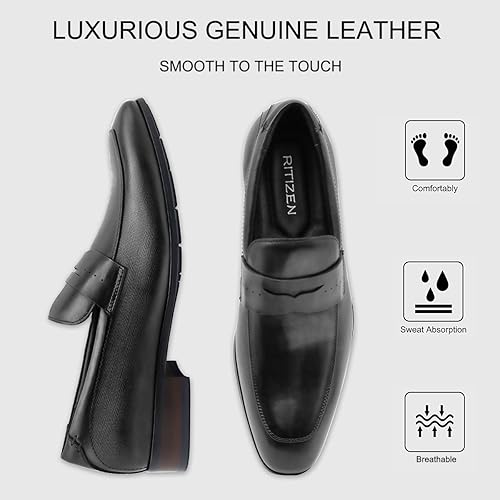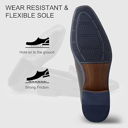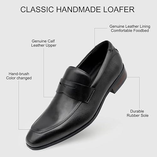 Upper: 100% natural genuine calf leather.Calfskin has certain toughness and wear resistance Lining: Soft calfskin lining and comfortable insole for everyday walking without foot pain. Rubber Outsole: Made of lightweight rubber, these men's slip-on loafers are flexible and wear-resistant, durable enough to be worn indoors or out, with a unique non-slip texture. Classic Style Design: With a classic upper, these oxfords are very stylish, perfect for formal and casual wear, perfect for business, parties or weddings. Perfect Gift: These men's dress shoes are perfect for pairing with slacks, suits, jeans, and more, it will make you feel sophisticated, mature, and steady, making it the perfect gift for your dad, husband, or boyfriend.