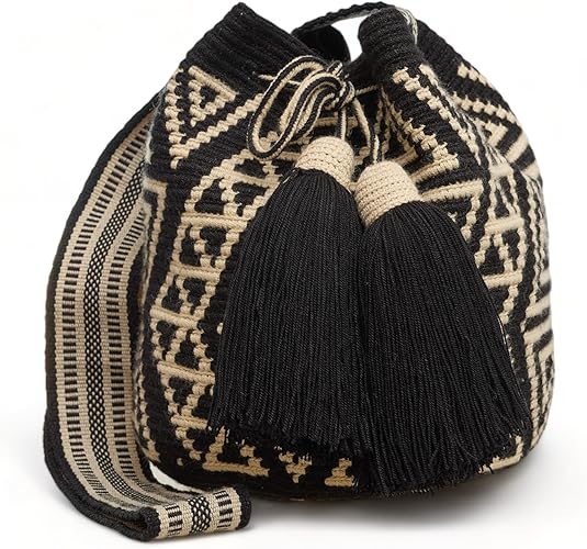 ❤️ wayuu bags - bolsos wayuu: Will add personality to your outfit and let you prominent from the crowd! ❤️ You will love this Colombian purse! It comes with braided drawstrings, big charm tassels, design at the body and bottom with a woven sturdier strap (It does not stretch over time). ❤️ size: MEDIUM (9” Height - 8" Diameter - SD: 21”) If you don’t want a large bag, Just something cute but not big This is the one, perfect for carrying around your makeup, cellphone, and wallet. ❤️ Take this crossbody purse to brunch with your friends, shopping, at the beach, or city; combining tradition with chic HANDMADE by Indigenous Wayuu people, it will last you throughout the years. ❤️ This mochila wayuu takes 15 days to weave; Love Them Or We Will Re-Buy Them Back From You!! No Questions Asked! , Add to Cart and 'Buy now'!