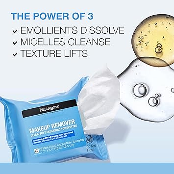 Twin Pack with 25 count of ultra-soft, pre-moistened Neutrogena Makeup Remover Wipes with a micellar-infused triple emollient formula remove waterproof makeup and cleanses skin while leaving it feeling refreshed, soft, smooth and conditioned Makeup remover face cleansing towelettes work to dissolve all traces of dirt, remove bacteria, impurities, oil and makeup on skin while also removing pollution, sweat and sunscreen, for superior cleansing and makeup removing power at your fingertips Facial cleansing wet wipes are ophthalmologist-, dermatologist-, and allergy-tested and gentle around the eye area. The effective formula removes up to 99% of makeup--even stubborn waterproof mascara--without tugging Makeup remover wipes are disposable and thoroughly cleanse skin, leaving behind no heavy residue so there's no need to rinse Facial cleansing wipes are great to use in a daily beauty or skincare routine for a refreshing self-care experience at-home