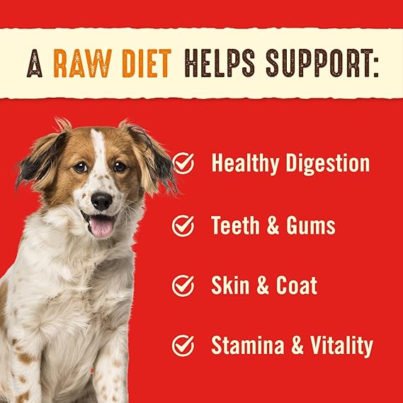Love Is Raw: Our Freeze-Dried Raw dinner patties offer the protein-rich taste dogs crave with the nutrition they deserve Irresistible Taste Dogs Love! Made of 95% beef, organs and bone, such as beef tripe, our grass-fed Beef recipe will delight your pup Whole Prey Ingredients: Feeding your pet a diet similar to what their ancestors enjoyed in the wild helps your pet thrive; a raw diet helps support healthy digestion, strong teeth and gums, vibrant skin and coat, and stamina and vitality Grain Free: Easy for canines of all life stages to digest, our nutritious, grain-free recipe has NO unnecessary fillers and only the finest ingredients Supports Whole Body Health: Fortified with added vitamins and minerals, our Freeze-Dried Raw formula helps improve your dog’s entire well-being, with fiber and probiotics for digestive support and taurine for heart health Natural Nutrition: We source 100% organic fruits and veggies, such as cranberries, blueberries, broccoli and beets, which provide antioxidants to help support a healthy immune system and overall energy Great for the Skin & Coat: Omega fatty acids from pumpkin seeds and fenugreek seeds provide skin and coat support