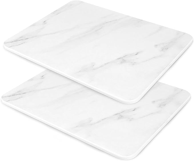 2 Pack Stone Drying Mat for Kitchen Counter, Super Absorbent, Heat Resistant Dish Drying Mats, Eco-Friendly Diatomaceous Earth Stone Rack Tableware Mat (11.8x15.8 inch, Whtie Marble)