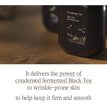 ???? IMPROVE SKIN ELASTICITY BY KOMBUCHA ENERYGY (Fermented Black Tea) - Kombucha is fermented from 7days to 30 days or more containing rich ingredients such as Polypheno, catechin. Pyunkang Yul Black Tea Serum delivers the power of condensed fermented Black Tea to help keep the skin firm and plump ???? RESTORE SKIN TO ITS YOUTHFUL BEAUTY - Enriched skin-revitalizing ingredients such as Peptide and Adenosine provide healthy energy and vitality to the skin that has lost its strength. It minimizes the appearance of dehydrated fine lines therefore boosting the youtuful-look ???? THOUGHTFUL SUPPLY FOR ELASTIC SKIN - Ginseng Berry extract which contains the core nutrients of Ginseng, delivers deep and intensive nourishment so that makes taut and bouncy skin ???? SECRET OF BRIGHT RADIANT SKIN - Naturally-sourced Seaberry exctracts deliver strong vitality to the deep inside of skin. Niacinamide reduce the appearance of dark spots therefore makes translucent and even skin tone ???? HIGHLY ENRICHED DENSE FORMULA - The moisturizing formula dissolves into the skin refreshingly without any stickiness and replenishes it with condensed nutrients