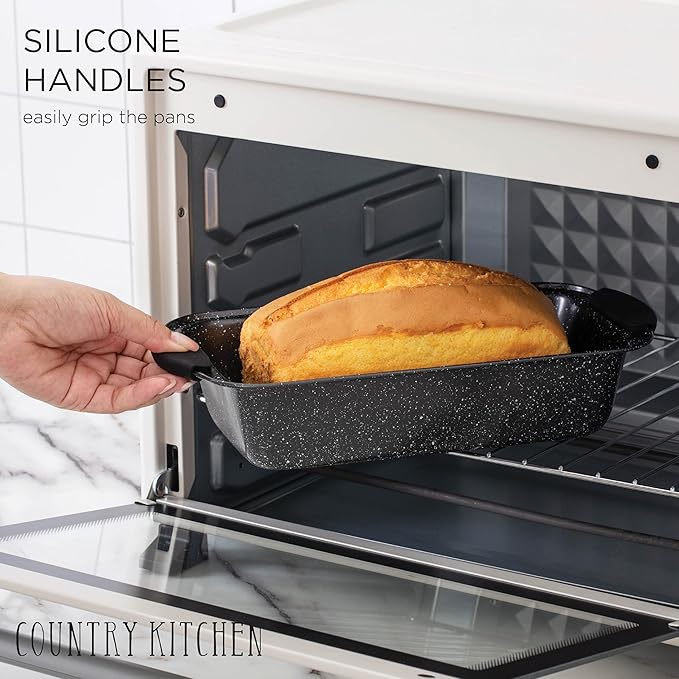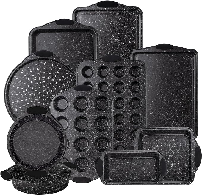 Country Kitchen 10-Piece Nonstick Stackable Bakeware Set - PFOA, PFOS, PTFE Free Baking Tray Set w/Non-Stick Coating, 450°F Oven Safe, Round Cake, Loaf, Muffin, Wide/Square Pans, Cookie Sheet