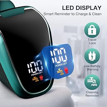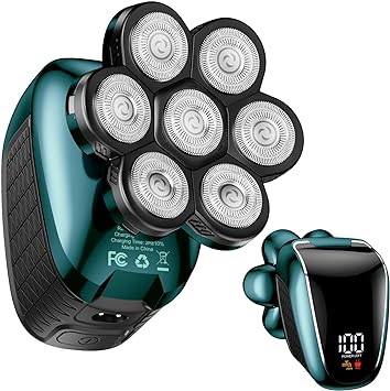 【7D Floating Shaving Head】The upgraded version of the 7D floating shaving system is ergonomically designed.The design of 7 cutter heads increases the shaving area and saves shaving time. Our shaver is designed with a non-slip handle for easy gripping, a great choice for your shaved heads. 【Double Blade & Double Protective Net】Men’s bald head shaver uses double-layer durable blade to accurately capture long and short hairs, which are precise, sharp and safe. The double net provides protection and reduces irritation. The intelligent induction system effectively prevents hair pinching and brings you a comfortable and smooth shaving experience. 【Professional Grooming Kit】 Wyklaus men's electric shaver includes head shaver, hair trimmer, nose hair trimmer, cleansing brush, hair trimmer combs(3/5/7mm) and USB cable. A large number of accessories can meet any of your shaving, beauty and cleaning needs, suitable for home and travel, and convenient for your life. 【LED Intelligent Display】The bald head shaver for men with LED display can accurately show the percentage of the battery power. Low battery reminder, water washing reminder more intelligent. Long press the switch button for 3 seconds to trigger the travel lock to avoid additional power consumption. This electric shaver uses 600mAh large-capacity battery, 1.5 hours of fast charging can provide 90 minutes of working time. 【Waterproof and Wet & Dry】If you want a cleaner shaving experience, we recommend that you use shaving foam to soften the stubble before using our razor. The whole body of the shavers for men is IPX6 waterproof, offered you a comfortable dry shave or a refreshing wet shave with shaving foam. You can use the small brush provided for cleaning, which is easy to operate and easy to clean. This versatile shaving kit is a great gift for your husband or boyfriend.