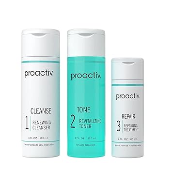 THE ORIGINAL ACNE KIT THAT STARTED A SKINCARE REVOLUTION - Designed specifically for acne-prone skin, Proactiv Solution delivers finely-milled benzoyl peroxide deep into your pores to help stop acne-causing bacteria in its tracks and prevent new breakouts from forming. YOU NEED MORE THAN A PIMPLE CREAM - Proactiv Solution is a powerful, comprehensive acne treatment system that goes deep into your pores, removes impurities and helps prevent future flare ups. YOUR SKIN ROUTINE, MADE EASY - Just 3 steps a day gets you on your way to clear, radiant skin. SAFE FOR ALL AGES AND SKIN TYPES - Proactiv's 3-Step Kit provides the same powerful skin care for teens and adults, and is great for sensitive skin. This kit includes: Proactiv Solution Renewing Cleanser, 4 FL. OZ. ; Proactiv Solution Revitalizing Toner, 4 FL. OZ. ; Proactiv Solution Repairing Treatment, 2 FL. OZ.