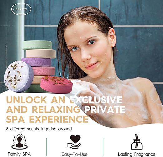 Perfect Gift Options - Beautiful package for you to send as a gift without repackage it. Containing 8 packs of 7 scents, every bath is an amazing experience. Natural Ingredients - BLRIET is made with the finest ingredients. Soothing and no side effects, you can enjoy mesmerizing personal spa without worry. Superior Scent - Developed and repeatedly blended in the laboratory by master perfumers. Deep Relaxation - Newest shower steamers formula with stronger scent and longer lasting effects. Highest concentration of flavor, with 20% to 45% more aromatic compounds than other products. Personal Spa - A one-of-a-kind home spa experience where scented steam will slowly envelop and surround you, enjoy the serenity.