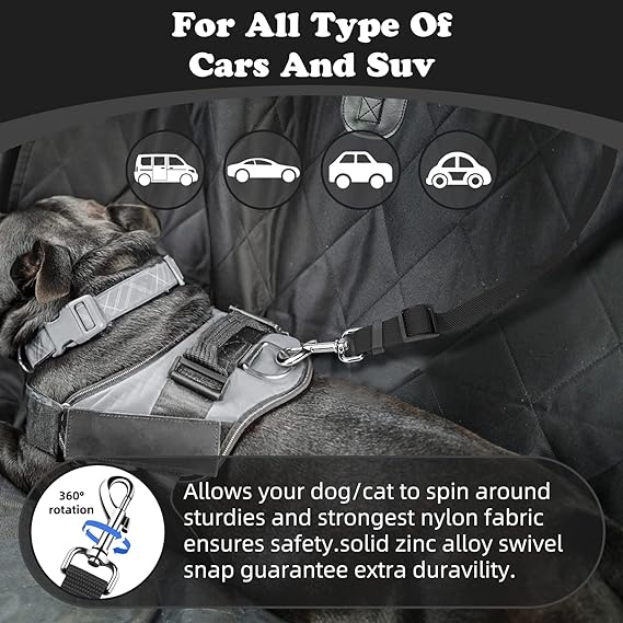 HIGH QUALITY: Made of high quality nylon fabric to ensure safety, features the solid zinc alloy swivel snap and quality buckles, the pet car seat belt ensures the most safest traveling for your pet, and provides a most relaxing driving experience for you. ADJUSTABLE LENGTH: Dogs come in different sizes and weights. The Bwogue Headrest Restraint is adjustable between 18-30 inches,You can easy to adjust the dog leash to the suitable length to keep your pet in a safety state. CONVENIENT: The tangle-free nylon straps quickly and easily attaches to vehicle headrests. Safety strap is easily removed making it the perfect leash for your vehicle! PRACTICABILITY: Our durable leash Not only can use for car ,but also can be converted to a traditional hand-held leash whenever you need. In addition,It is easy to have the pets secured to a tree or other strong post to keep pets safe when you need. KEEP IN MIND: For your pet's safety, please do not attach the seat belt to your pet's collar directly. It is recommended to use the seat belt leash with pet harness than pet collar, to provide your pets a comfortable and secure wearing.