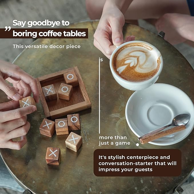 Premium Quality: Experience exquisite craftsmanship with our beautifully designed XOXO game allows you to enjoy countless hours of thrilling table games like never before. Crafted from high-quality wood, our Tic Tac Toe game is built to last. Learning and Social Tools: Enhance critical thinking and stronger family bonds with our wooden brain teasers. It's more than just a brain games; it's a learning games while creating cherished moments of togetherness as a family games. Made your day with these party games, travel games or pool game! Easy and Fun for All Ages: Enjoy hours of fun and excitement for players of all ages with our easy and entertaining tictactoe game. This isn't only kids games, it's designed for players of all ages, it guarantees endless excitement and laughter for everyone involved. Coffee Table Decor: Add a touch of aesthetic to your home with our classic table top game. This is a perfect blend of elegance and functionality with farmhouse decor which gives a minimalist home decor vibe. Let our home design games redefine your home design games with unique home decor and charm. Unique Gift for All Occasions: Surprise your loved ones and make every occasion memorable with our toy&games, unisex gifts for adults and kids that will leave a lasting impression. Perfect wood gifts for unisex gift exchange, also fun gifts, funny gift and prank gifts.