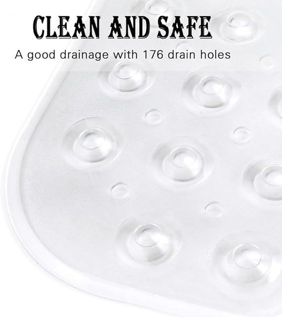 Vinyl Extra large bathtub mats: No chemical smell, vinyl quality material. Heavy duty and standard dimensions and rectangle's shape makes it lays flat in any smooth bathtub floors. Non-slip shower mats with hundreds of suction cups: YINENN anti-slip bath mats features 200 suction cups that help hold in place on smooth surfaces. Powerful suction cups offer 360 degree safety protection for users. YINENN bathtub mat is a great choice for the home, gym, spa and more! Multifunctional and utility: looks like pebble design, provide massage experience in shower time as it comes with 200 suction cups, featuring necessary anti-slip function, meanwhile YINENN extra large mat is 40 inch x 16 inch which provides excellent coverage and also features small holes throughout to allow water to circulate. Machine washable: YINENN bath mat consists of 176 drain holes, machine washable to facilitate hassle-free maintenance. To clean at any time, simply toss the mat into the machine and enjoy its fresh appearance. Air dry for years of safe, healthy, hassle-free to use. Warning: YINENN bathtub mat only attach to smooth and clean surface. Don't for use on textured, tiled, or non-smooth surfaces. Do not use bath oils in case of slipping.It's recommend to allow the mat to air out in a well ventilated area for 24 hours before use if you encounter a strong odor when the package is first opened.