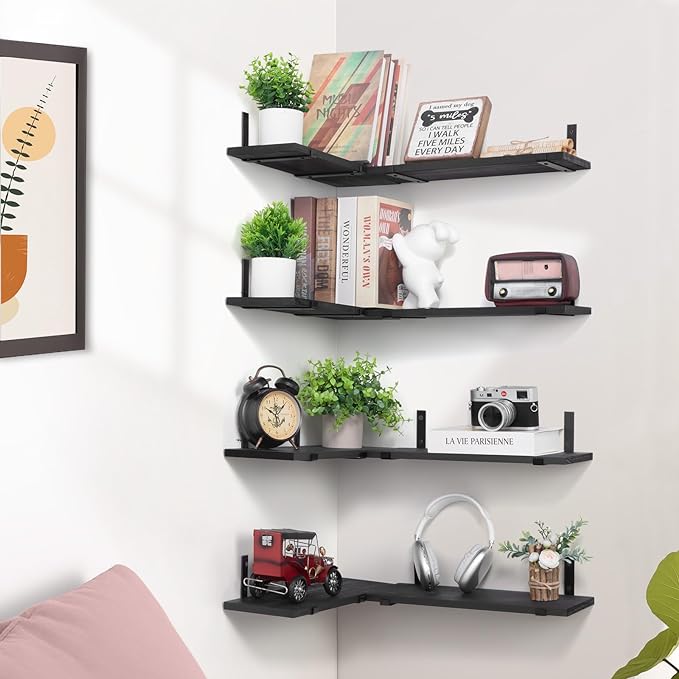 SALA Wall Shelves Set of 8, Width 6in Black Floating Shelves for Wall Decor, Modern and Rustic Home Decor, Wood Shelves for Bedroom, Living Room, Bathroom, Kitchen,Corner, Office and Plants