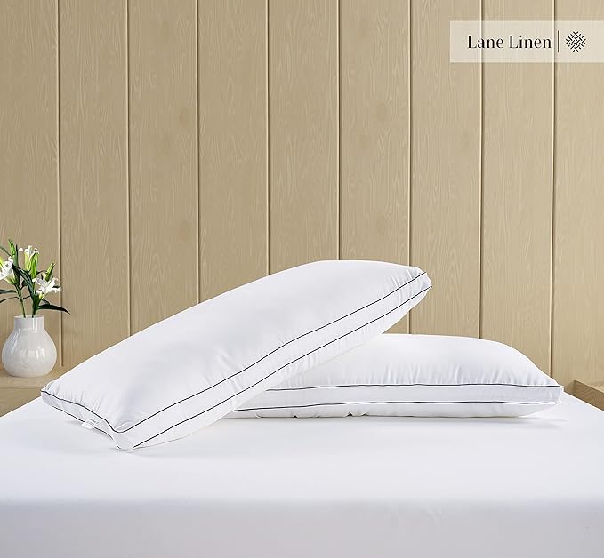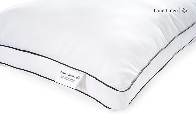 Firm Pillows for Side Sleeping : Get a good night's sleep with a firm, supportive pillow. Side sleeping is the healthiest way to sleep, and Lane Linen bed pillow is designed for side sleepers. Stop waking up with a crick in your neck as our pillows for neck pain provides keeps your head, neck, and spine aligned. Cooling Pillows for Sleeping : Say goodbye to sweaty, uncomfortable nights and stay cool and comfortable all night long. Our sleeping pillow has a Poly Modal fabric cover which is super soft, breathable, durable & lasts longer than traditional pillows. Modal is a viscose rayon which is a natural fiber and helps regulate your body temperature. Down Alternative Filling : Our side sleeper pillow is filled with Advansa Aerelle fibers providing delightfully soft and cuddly quality soft pillows for sleeping. Extremely fine and supple fibres have been selected for the filling of this product resulting in unmatched softness. Perfect Size : Lane Linen standard pillows set of 2 measures 20 x 26 inches which is a perfect fit for standard & queen size pillow cases. Our stomach sleeper pillows come vacuum-sealed for shipping, once opened it will start to fluff up. Please leave 24 hours for the pillow to get to full thickness before using it. Easy Clean : The easy-to-clean design means that you can keep your pillow fresh and clean without any extra hassle unlike memory foam pillows.