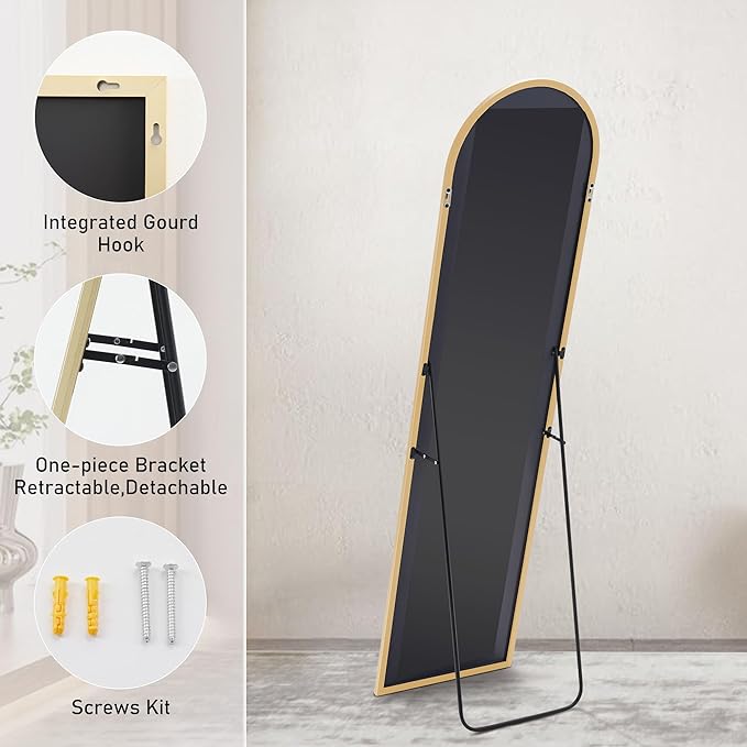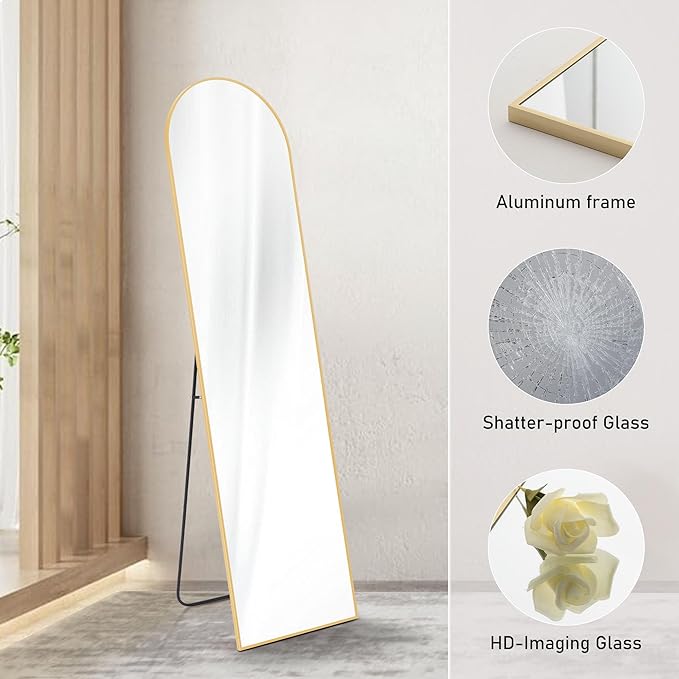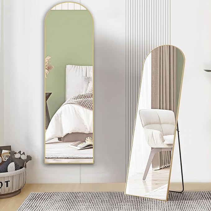 Sweetcrispy Arched Full Length Mirror 59"x16" Full Body Floor Mirror Standing Hanging or Leaning Wall, Arch Wall Mirror with Stand Aluminum Alloy Thin Frame for Bedroom Cloakroom Living Room,Gold