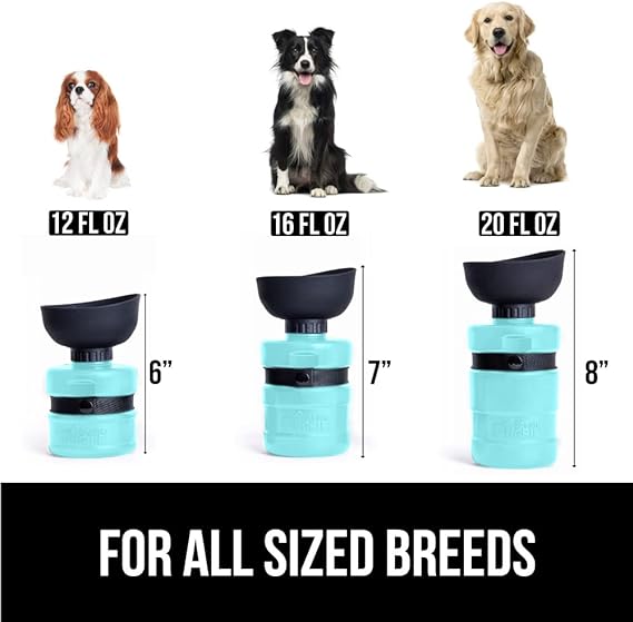 WASTE LESS WATER: water bottle is so easy to use; by squeezing the bottle and locking the top, water is released into the bowl so your pet can easily drink; once they’re done, unlock and squeeze the bottle to drain water back into the bottle, helping you to waste less water 2 IN 1 DESIGN: finally an easy way to keep your pet hydrated while you’re on the go; the 2 in 1 design features a travel water bottle combined with a built in water bowl; the water bottle holds water from a fresh trusted source; the fold cap acts as the bowl for your furry friend, so there is no need to carry an extra bottle or bowl to hydrate your pet on the go LEAKPROOF DESIGN: pet water bottle is designed with an easy twist lock mechanism located at the bottom of the silicone bowl; twist the lock to create an air tight seal that helps prevent water from leaking out of the bottle LARGE CAPACITY BOTTLE: when on the go, it is especially important to bring enough water for your pet; the bottle comes in three convenient sizes 12oz, 16 oz, and 20oz, so you can find the best fit for your furry friend DISHWASHER SAFE FOOD GRADE SILICONE: the water bottle’s fold cap is constructed of premium food grade silicone that is dishwasher safe for a fast and easy clean; this means you can spend less time cleaning up after your adventure, and more time playing with your furry friend