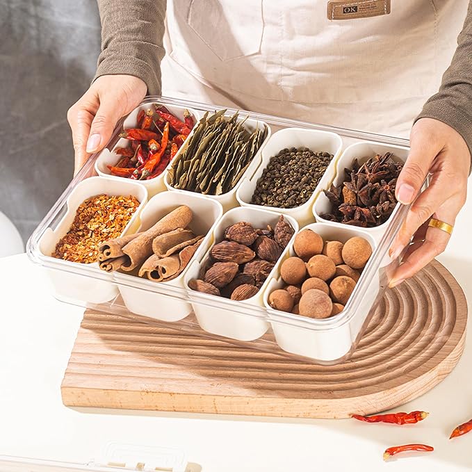 Divided Serving Tray with Handle, 8 Compartments Snack Box for Candy, Nuts, Cookies, Fruit, Snacks, Party Favor, Wedding, Home Decor(Pack of 2)