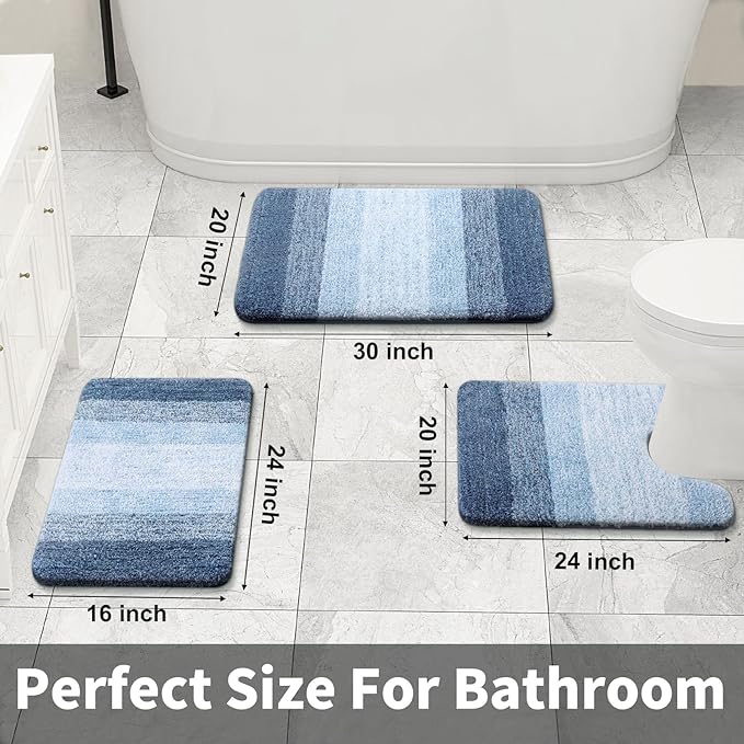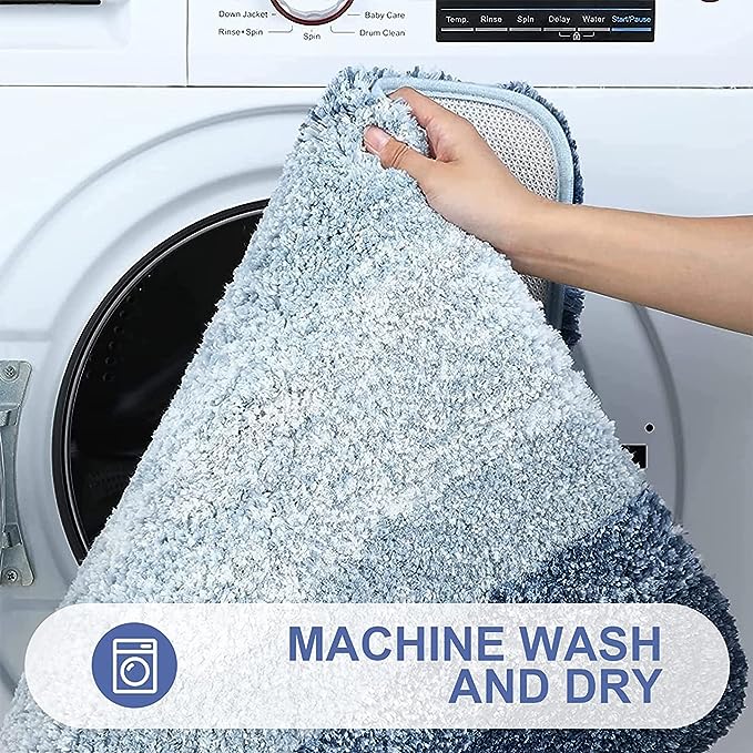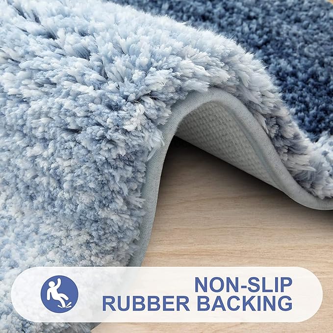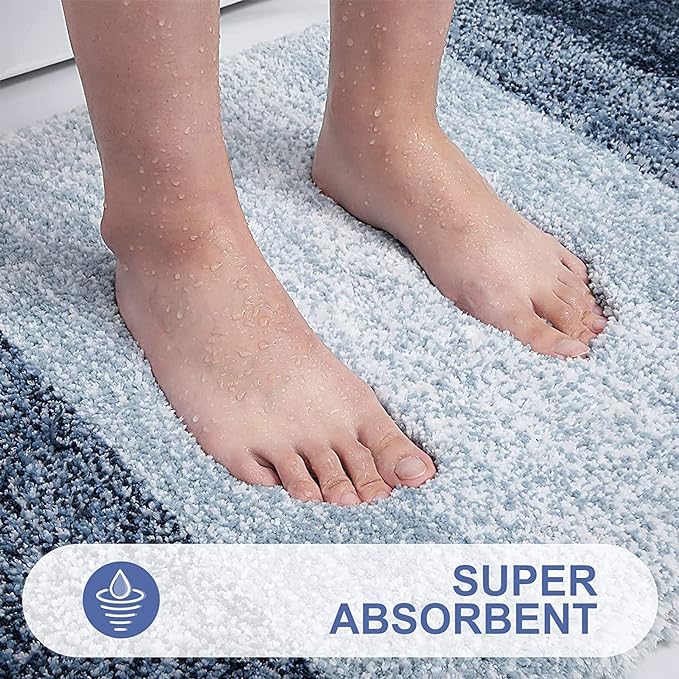 [Heavy Density Microfiber] The bath mats are made up of 1.18-inch height premium thick, soft and fluffy microfiber, where with the help of unique fiber locking technique, the fluff is thicker, making it well-suited for bathroom, vanity, vacation home, master bedroom, kids’ bathroom, guest suite. [Non-Skid TPR Backing] The mat is equipped with TP rubber backing and not PVC or glue, to provide you with slip free experience and sturdiness. Please note not to place the mat on wet surface and make sure that the floors are dry underneath the rug, to prevent slippage. [Ultra-Absorbent & Quick Dry] The soft shaggy microfiber fabric, will not let the water drip on to the floors, when you are stepping out of your bath, shower or getting ready by the sink. Further, there is moisture trapped inside the mat’s deep pile, which allows the rug to dry quickly and cleanly. [Easy Maintenance] OLANLY bathroom mats can be machine washed separately with cold water, mild detergent which has no chlorine or bleach and tumble dry on low speed or hang dry. Also, the color will not fade and will stay vibrant for many years even with after washing and drying many times. [Beautiful Décor, Gifting & Multipurpose] The bath mats have unique gradient color stripe design, to provide beautiful décor to nearly any space in your bathroom. The mats work perfectly in front of your single or double sink, shower, bathtub or anywhere you want to have support and warmth for your feet. Further, the mats make a optimal gifting choice for your friends and family during Christmas, Mother’s Day, Father ’s Day or any other special occasion.