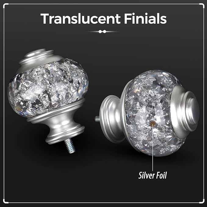 TELESCOPING & SPLICING DESIGN: USFOOK curtain rods contain several segments that can be twist in to get alternative length and it can also be adjusted by sliding at the end, meet your different size needs. Any concern about the size before purchase, please kindly contact us. SMOOTH SLIDING: Compared with other traditional telescoping curtain rods, there is no step between each rods, so the grommets won't randomly catch somewhere in the middle of the rod when sliding the curtains. ROBUST & STURDY & THICKER: USFOOK drapery rods with 7/8 Inch diameter and 0.6 mm thickness will hold weight up to 22 pounds, great for bearing heavier fabrics such as grommet curtains and clips drapes. And Splicing design is much more sturdy and not easy to sag. CRYSTAL BLING APPEARANCE: It is very elegant with its crystal bling finial, sprinkled with silver foil, which is a perfect complement and enhancement to the lovely curtains they suport. EASY TO INSTALL: USFOOK window curtains rod comes ready to hang with all the mounting hardware, including brackets, screws, drywall anchors and instructions.You can easily mount single rod in just a few steps and minutes.