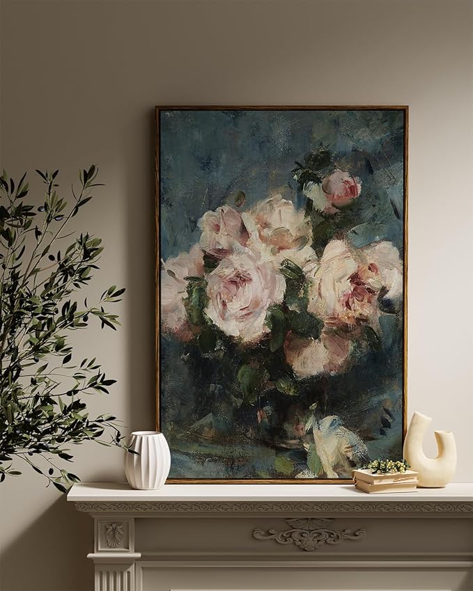 CLASSICAL WALL ART HOME DECOR: This vintage flower painting transports us to a bygone era, where the timeless beauty of flowers takes center stage in a masterful display of artistry. These classic artworks capture the essence of a romantic and nostalgic time, allowing us to savor the enduring beauty of flowers as seen through the eyes of talented artists from the past. QUALITY GUARANTEE: Immerse yourself in the superior craftsmanship of this high-quality canvas wall art prints. Printed on premium canvas and expertly wrapped on a sturdy MDF backing, it ensures long-lasting durability and visual appeal. Elevate your living room, bedroom, bathroom, home bar, office, kitchen, dining room, and more with this exquisite room decor. READY TO HANG: This framed canvas art wall decor measures 24x36 inches, comes with 2 hooks which makes it easy to hang. Please read the installation instruction image before nailing the hook on your wall. (This item is handmade, so please allow the size error to be about 0.2 inches) ORDER CONFIDENTLY: Rest assured that every product has undergone careful inspection and packaging before shipment. The four corners of the frame are protected with corner-protector to prevent collisions during transportation, and the outer layer is wrapped with clear film for added protection. WONDERFUL GIFT: Whether it's for housewarmings, birthdays, anniversaries, weddings, Christmas, or any other occasion, this rustic home decor makes a thoughtful and impressive gift.