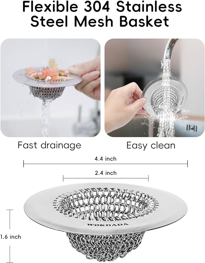 Sink Drain Strainer, Reversible Mesh Sink Strainer with 304 Stainless Steel, Wokdada Revolutionary Anti-Rust Kitchen Sink Strainer Food Catcher for Garbage Disposal Without Clogging