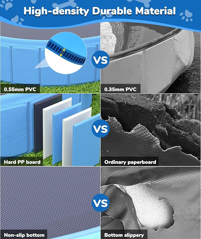 ????[Multifunctional 2-in-1 Design] Our updated pet splash pool is a versatile blend of a common pet splash mat and a dog pool. It serves as a refreshing swimming pool for your pets and creates a playful splash area through small holes on the top, ensuring a joyful water experience during the summer. ????[Enduring and Safe Materials] Crafted from high-quality PVC and sturdy PP hard plastic, this dog pool ensures both safety and durability. The non-slip design on the pool's bottom enhances safety during water play, providing a secure and comfortable environment for your pets to enjoy. ????[Convenient Foldable Design] Featuring a quick and user-friendly foldable design, the pool easily folds to dimensions of 12''*7.5*13. Composed of multiple panels, its intuitive folding design simplifies setup. The compact, portable size after folding makes storage and transportation hassle-free. ????[Large Size and Versatile Use] With an diameter of 79'' and a height of 12'', this pet splash pool accommodates multiple pets and people for shared play. Its versatility allows it to function as a dog toy pool, baby/dog bathtub, kiddie pool, outdoor pool, ocean ball pool, sandbox, and more, suitable for various settings. ????[Smart Water Management] Equipped with an inlet and two outlets, our dog pool ensures efficient water management. The yellow inlet serves as the water source, creating a fountain. Opening the upper outlet helps maintain the water level, while the lower outlet facilitates efficient drainage. Connecting a drainage pipe ensures a cleaner and eco-friendly drainage process.