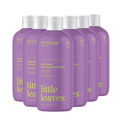 ATTITUDE Bubble Wash for Kids, EWG Verified Bubble Bath, Hair Shampoo and Body Soap, Dermatologically Tested, Plant- and Mineral-Based, Vegan, Vanilla & Pear, 16 Fl Oz (Pack of 6)