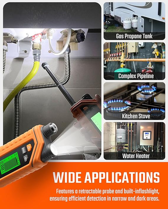 【Efficient Charging and Multi-Gas Detection】The PT760 Rechargeable Gas Detector features a Type-C charging port for swift power replenishment. This device is capable of precisely detecting a range of combustible gases, including LPG, methane, ethane, propane, butane, natural gas, coal gas, and gas fuel, effectively pinpointing any gas leaks. It's an essential tool for your daily gas equipment usage, offering reliable support for maintenance 【Telescopic Stainless Steel Probe for Versatile Applications】With its 12-inch stainless steel telescopic probe, the PT760 gas leak detector allows you to effortlessly detect gas leaks in narrow and hard-to-reach areas, such as inside pipes and behind cabinets. After inspection, simply retract the telescopic rod, making the entire device compact, portable, and easy to store in the included protective box 【Eye-catching Alerts & %LEL Detection】Upon detecting a gas leak, the PT760 propane leak detector triggers both an audible and visual alarm within 0.5 seconds. You can gauge the severity of the leak by the alarm tone frequency and screen color change. The screen also displays the current lower gas explosion limit value, with a detection range spanning from 1%LEL to 20%LEL (100ppm-10,000ppm) 【User-Friendly Features】The PT760 combustible gas sniffer offers an ergonomic grip and boasts reliable and durable construction materials. It automatically preheats in just 30 seconds upon activation, with a countdown timer displayed on the screen to keep you informed of the preheating progress. Equipped with a built-in flashlight, it's suitable for use in poorly lit areas. The device also includes a low battery indicator and an automatic power-off function, ensuring user-friendliness 【What You Get】1x PT760 Gas Leak Detector, 1x Type-C Charging Cable, 1x Protective Case, 1x User Manual. Combined with Amazon's excellent delivery service, we provide a 36-month after-sale service and lifetime technical support. Please feel free to contact us if you have any questions or concerns