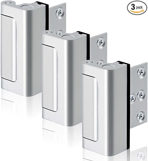 3PACK Home Security Door Reinforcement Lock Childproof, Add High Security to Home Prevent Unauthorized Entry, Aluminum Construction Finish, Silver
