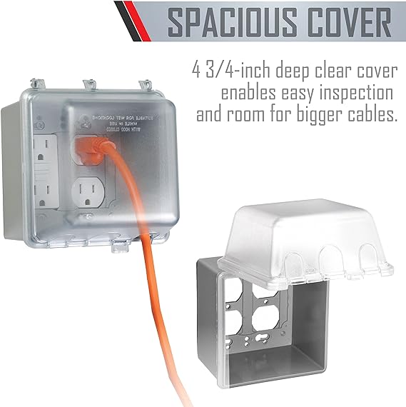 TayMac MM7440C 4.75-in. Deep Outdoor Box, UFAST 55-in-1, Rated NEMA 3R 2-Gang Weatherproof in-Use Electrical Outlet Cover for Home Improvement, Clear