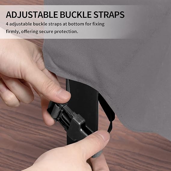 Dimensions: The rectangular furniture cover measures 124"L x 71"W x 28"H, which fits outdoor sectional furniture set and rectangular patio table and chair set. Kindly measure your furniture size before purchasing. It is suggested to choose the cover 1-2 inch larger than your furniture size. Waterproof: The fabric of the outdoor furniture cover is processed with waterproof treatment, coated with PVC backing, can be 100% waterproof, and the reinforced sewing ensures that the water won't seep into the cover on rainy days. Weatherproof: The patio furniture cover is made of heavy-duty oxford fabric, which is durable for long time use, offering protection from natural damage like sun, dirt, rain, snow, etc. Keeping your furniture set to be safe, clean and dry. Windproof: Fastening the 4 quick-release buckles in each corner to table leg can prevent the cover from being blown off on windy days. There is a long adjustable strap at the middle of long side bottom to be closed across the furniture for a tight fix. Easy Use and Care: Two padded handles at each side for easy installation and removal. It is easy to clean, just wipe with water. Do not put it in the wash machine.