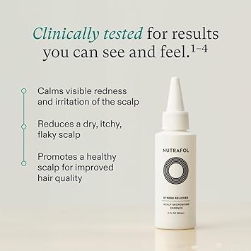 DAILY SCALP ESSENCE: One (1) 2 fl oz bottle of Nutrafol Scalp Essence, a clinically tested scalp moisturizer to soothe and calm a dry, red scalp for improved hair health (1-4) FOR THOSE WITH A DRY, ITCHY SCALP: Physician-formulated to reduce itch, flakes and dryness for a healthier scalp and improved hair quality (1-4) BACKED BY RIGOROUS CLINICAL TESTING: Use this dry scalp moisturizer daily. In a clinical study, 97% of users felt their scalp was soothed after adding scalp essence to their weekly routine for 4 weeks (1) FOR SENSITIVE SCALPS: Features a proprietary blend of gentle and safe ingredients, including pre-and postbiotics to protect the scalp microbiome, and soothing Peach Gum and Prickly Pear CERTIFIED MICROBIOME-FRIENDLY: Nutrafol Scalp Care is among the few product lines to be certified microbiome-friendly by MyMicrobiome. The certification process was developed to ensure products do not disturb the balance of the scalp and preserve the diversity of the scalp microbiome