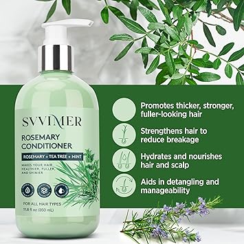 STRENGTHEN AND REJUVENATE YOUR HAIR: Svvimer hair growth conditioner for women and men is designed to deliver visible results quickly! The rosemary mint hair strengthening conditioner leverages the natural power of Rosemary, Tea Tree, and Mint, enveloping each strand in nutrient-rich hydration for visibly fuller, radiant hair. EFFICIENT FORMULA: Svvimer rosemary conditioner is a nutrient powerhouse, fostering robust hair growth and reducing breakage. Witness the transformation as your hair flourishes with this hair conditioner for damaged dry hair! NATURAL INGREDIENTS: Experience the luxury of clean, sustainable beauty with every wash with the hair conditioner for men and women. Formulated without parabens and sulfates, this biotin conditioner for thinning hair is a testament to our commitment to your well-being and the planet's wellness. PERFECT FOR ALL HAIR TYPES: This moisturizing conditioner for dry hair is a universal elixir suitable for all hair types and genders. Whether you have blonde colored hair, extended locks, or curls, our conditioner for colored hair is designed to cater to the unique needs of every individual. WE STAND BEHIND OUR PRODUCTS: Our main goal is your satisfaction with our rosemary conditioner for hair growth. Our team is devoted to delivering superior customer service, making sure that your journey with the conditioner for damaged hair is as rewarding as the stunning results it yields.