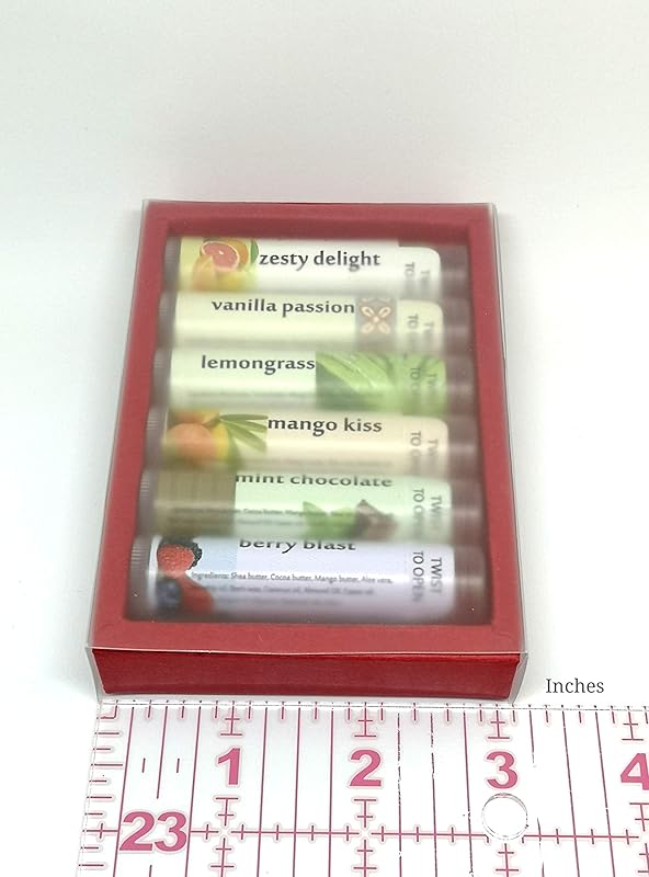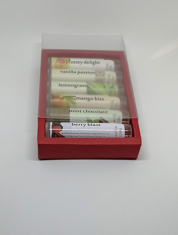 Feel the happiness on your lips the very first time and each time you apply this lip balm! Each application gives you moisturized and soft lips as well as eliminating cracking. Our ingredients are carefully selected to give you a product that will nourish and restore cracked harsh weather-exposed lips. Sadji Treasures handcrafted organic lip balms are just what your lips needs to look and feel their best! Each step of the crafting process is aimed at getting you an awesome lip balm that will restore and nourish your lips with only organic products sourced from trusted sources. *Pack contains 6 lip balm tubes with assorted flavors: **VANILLA **ZESTY DELIGHT (mandarin/bergamot) **MANGO KISS **MINT CHOCOLATE **LEMONGRASS **BERRY BLAST Our ingredients (all organic): **SHEA BUTTER: Restores skin elasticity, moisturizes, anti-aging, reduces skin inflammation **COCOA BUTTER: Holds in moisture by forming protective barrier, rich in vitamins, improves skin tone MANGO BUTTER: Contains rich fatty acids and antioxidants, helps with fine lines, improves suppleness **BEESWAX: Restorative properties, vitamin A **COCONUT OIL: Natural SPF, locks in moisture,ideal for chapped lips, analgesic properties **ALOE VERA: Accelerates restoration, prevents wrinkles, soothing **ALMOND OIL: Protects from sun damage, promotes soft plump lips, helps retain moisture **ROSEHIP OIL: Helps boost collagen, hydrates, promotes glowing skin, contains vitamins A&C **VITAMIN E: Soothing properties, treats dryness, reduces itching, minimizes scars **CASTOR OIL: Fights dryness, soothing, promotes restoration **LANOLIN: Lightweight barrier on skin, extremely calming, slows water loss, softens skin **GLYCERIN: Attracts moisture, removes blemishes, increase softness of lips **MICA: Natural occurring mineral, gives beautiful pigment and shimmer **ESSENTIAL OILS: Contains vitamins for good skin health, gives lovely flavor Your lips will surely stay moisturized, nourished and chap-free!! Nourishing Lip Balm for soft healthy chap-free lips Protects lips against harsh weather conditions Only Organic natural ingredients are used Lightly flavored with essential oils