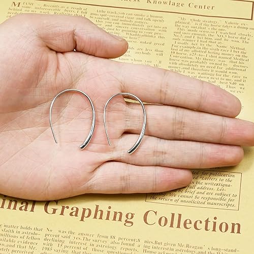 [High Quality] Pull through earrings are handmade of 925 sterling silver. It will not fade or rust. It is hypoallergenic and preventing from ear infection, you can wear it even your ears are sensitive. 100% free from BPA, lead, nickel and cadmium. [Beautiful Shape] Simple but fashionable. Silver hoop earrings can be matched with any clothing to add a trace of vitality to any outfit. The smooth silver strip gently swings and glitters on your ear. These dangle earrings are light, elegant and durable, and are an great addition to your daily jewelry collection. [Suitable Size] Our sterling silver earrings are soft texture, adjustable size. After many times wearing test and improvements, this size is suitable for most women. Hoops earrings won't drag down your earlobes like other earrings, because they are so light that you can wear them all day. Check pictures of the product to determine whether the size is right for you. [Maintenance method] In order to prolong the service life of silver earrings, please store jewelry in a cool and dry place, such as a jewel box or bag, and avoid rubbing with other jewelry. In addition, keep it away from cleaning products and perfume, which will have a negative impact on your earrings. [Exquisite Gift] We have delicate box and beautiful handmade earrings, it can be a nice gift as well. Give it to your lover, mom, aunt and grandma, kids, best friends and anyone who is important to you. This is a thoughtful gift for Birthday, Mother's Day, Anniversary, Graduation, Thanksgiving, Christmas, Valentine's Day.
