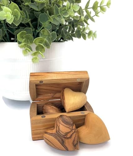 - Premium Olive Wood: Each wooden heart is meticulously carved from high-quality Olive Wood, known for its unique grain patterns and durability. The wood is sourced from the Holy Land, adding a spiritual and meaningful touch to each piece. - Set of 5 Hearts From The Holy land: Our bundle includes 10 intricately carved wooden hearts, allowing you to share love and warmth with multiple recipients or use them as decorative accents in various spaces. - Versatile Gift: These Wooden Hearts make a thoughtful and versatile gift for a variety of occasions, including anniversaries, Valentine's Day, weddings, or as a memorial token for someone experiencing loss. The timeless design ensures that they suit any decor style. - Handmade Craftsmanship: Each heart is lovingly crafted by skilled artisans, making each olive wood heart unique and showcasing the beauty of handmade craftsmanship. The attention to detail ensures a special and personalized touch in every heart. - Heartfelt Décor: Use these wooden hearts to add a touch of warmth and charm to your home décor. Whether displayed on a shelf, used as table centerpieces, or incorporated into wreaths, these hearts bring a rustic and elegant feel to any space.