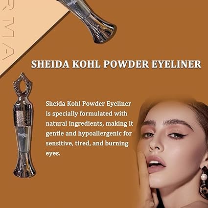 Sheida Powder Eyeliner, Sheida Powder, Handmade 100% Natural eyeliner powder, Intense Color, Long-Wearing, Smudge-Proof