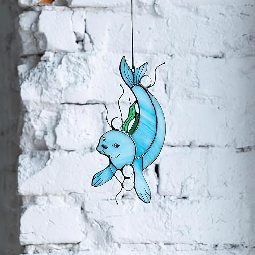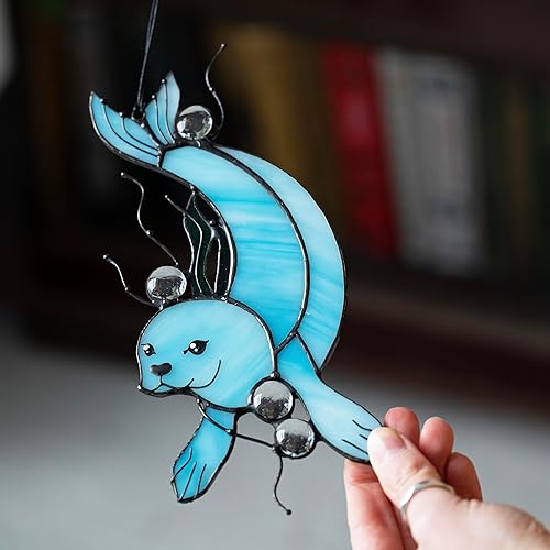 The whole stained glass suncatcher is made of high-quality stained glass, lead-free solder, copper foil, and metal chain, which is durable and safe to use. Size: 7.8 x 12" The package included a box with foam that ensures the safety of the glass. Also, we add a suction cup. The stained glass suncatcher is designed in the shape of a mermaid, with a beautiful and dreamy appearance. It is the perfect decoration for your living room, bedroom, bathroom, porch, window, and any other place you want to add color and light. The stained glass suncatcher is a perfect gift for your friends, family, or loved ones on Birthday, Valentine's Day, Mother's Day, or any other special occasion. It is a beautiful and meaningful gift that will be treasured for years to come.