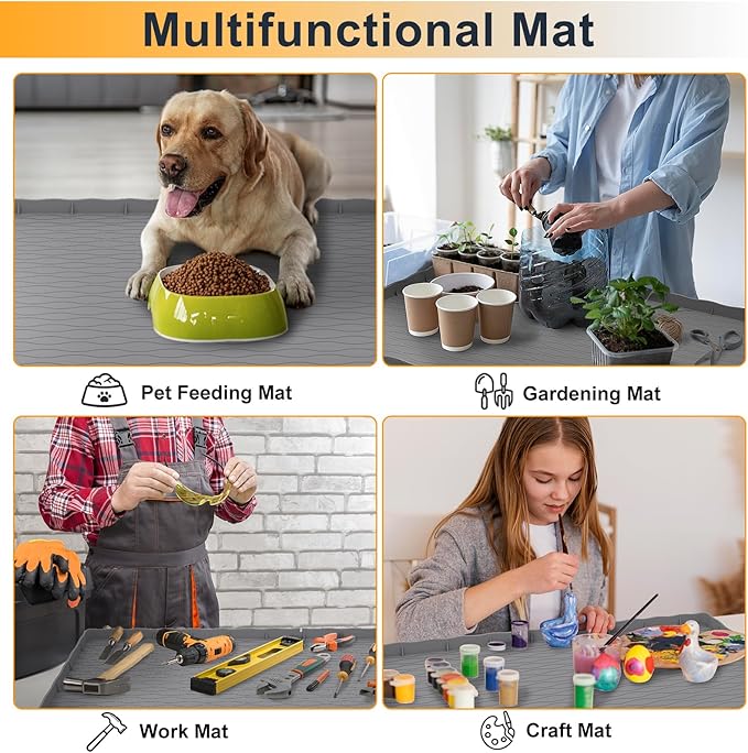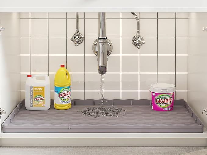 【Perfect for 36" Cabinet】 The MHHA Under Sink Mat measures 34" × 22" and is designed for use in standard 36" kitchen & bathroom cabinets. The flange on the edge of the under sink mat is 1" high and can hold up to 3 gallons of leakage, giving you plenty of time to fix cabinet leaks. 【100% Silicone Material】 Our under the sink mat are made of food-grade silicone and are water and oil resistant. Soft and resistant to deformation, can be folded for installation or storage. Easy to clean, simply wipe with a towel. 【Unique Overflow Warning Gap】 There is a overflow warning gap at the front of the under sink mat for kitchen waterproof. When you find a small puddle of water under your cabinet door, you should know that the undersink mat is full of water and needs to be cleaned in time. Easy to use! 【Multifunctional Silicone Mat】 Our under sink mat is not just a Under Sink Organizer, it can also be used as a pet feeding mat, work mat, boot tray or craft mat. Avoid messes & leaks, and keep your house clean at all times. 【After-sales Guarantee】 Customer satisfaction is our purpose of service. If you find any problems with our undersink mats for bottom of kitchen sink, please feel free to contact us, we promise to provide the best solution within 24 hours. Thank you for trusting MHHA.