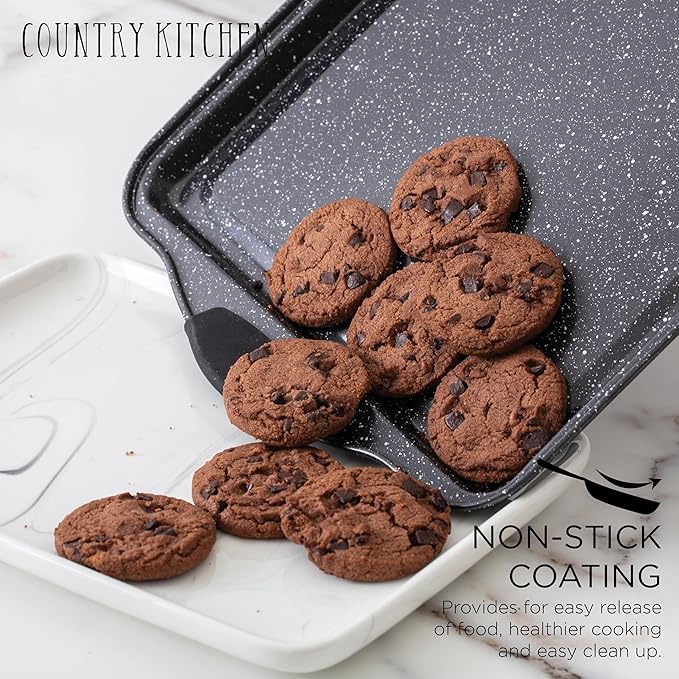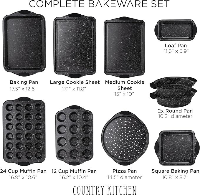 Country Kitchen 10-Piece Nonstick Stackable Bakeware Set - PFOA, PFOS, PTFE Free Baking Tray Set w/Non-Stick Coating, 450°F Oven Safe, Round Cake, Loaf, Muffin, Wide/Square Pans, Cookie Sheet