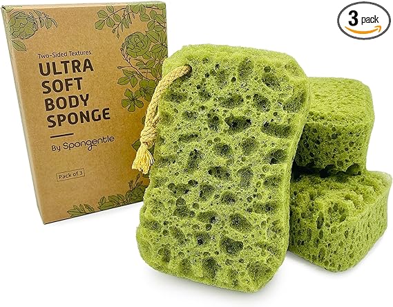 [MULTIPLE TEXTURES] - The only body sponge with two unique sides! It features a smooth surface for gentle exfoliation as well as a textured surface for deep exfoliation to remove the oil and gunk from deep within your pores. Comes with 3 Pieces. [DEEP CLEANSE] - Made with pure Polyurethane foam material, the sponge has an breathable surface that delivers a superior cleanse to your skin. [ADAPTIVE SHAPE] - Due to its thick but flexible nature, Spongentle’s bendable shape will adapt to every angle of your skin no matter where, giving you the deepest cleanse. [EASY CARE] - After using the sponge, simply rinse out the soap and use the convenient built-in rope to hang up and air-dry. [ECO FRIENDLY] - With its sturdy PU construction, Spongentle is stronger, longer-lasting, and more eco-friendly compared to PE and PVC sponges.