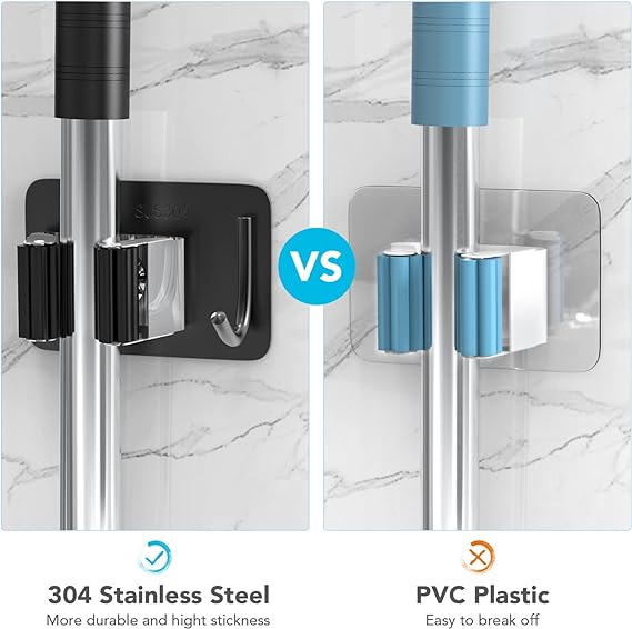 ✔ Get Your Home & Life in Order: HOMEASY mop broom holder includes 1 shelf and 1 hook, which can be used to organize broom closets, kitchens, garages and gardens, making it an ideal space-saving choice. Make everything at home more natural and comfortable. ✔ Waterproof: HOMEASY self-adhesive broom holder wall mount is made of high quality SUS 304 stainless steel, waterproof and rustproof. Triangle-buckle & petal-shaped gear adjust size automatically based on different thickness of the handles to prevent object slipping. Can stand up to 10 KG, more strong and sturdy than plastic holder. ✔ Easy to Install: HOMEASY wall mounted mop broom clip hangers is easy and convenient to install, just stick on the wall with strong self adhesive which firmly keeps your mop in place and guards them from falling off. ✔ Suitable for Indoor & Outdoor: HOMEASY mop broom organizer is perfect for the kitchen, closet, garage, office, great for commercial use. Since it is with weatherproof design, this broom mop hanger can even work outdoors or on the shed for your garden tools. ✔ Multi-purpose Storage: Self adhesive mop organizer is helpful to organize the mop, broom, umbrella, brush, shovel and other tools, keeping your home clean. The hooks can hang a variety of daily items, improving storage space.