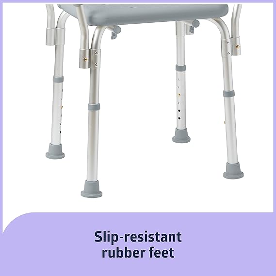 Medline Shower Chair with Back and Padded Arms, Bath Seat with Removable Back, Supports up to 350 lbs, Gray