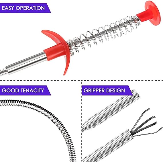 Extremely Slender. The diameter of tube ONLY 0.7cm. Our Grabber Tool is perfect for picking up small items in narrow spaces. Flexible & Bendable. The flexible metal tube has good toughness that can be bent freely. Makes this grabber tool accessible to all hard to reach narrow bended places Easy to Use. Press the red handle to reveal and open the claws, release the handle to grip the item. Four Claws are easy to grab a variety of small objects, can hold item tightly to prevent it from accidental falling when pick up Use For kitchen, bathroom, toilet, sinks, bathtubs and shower Drain Cleaning or any other place which is hard to get access to.