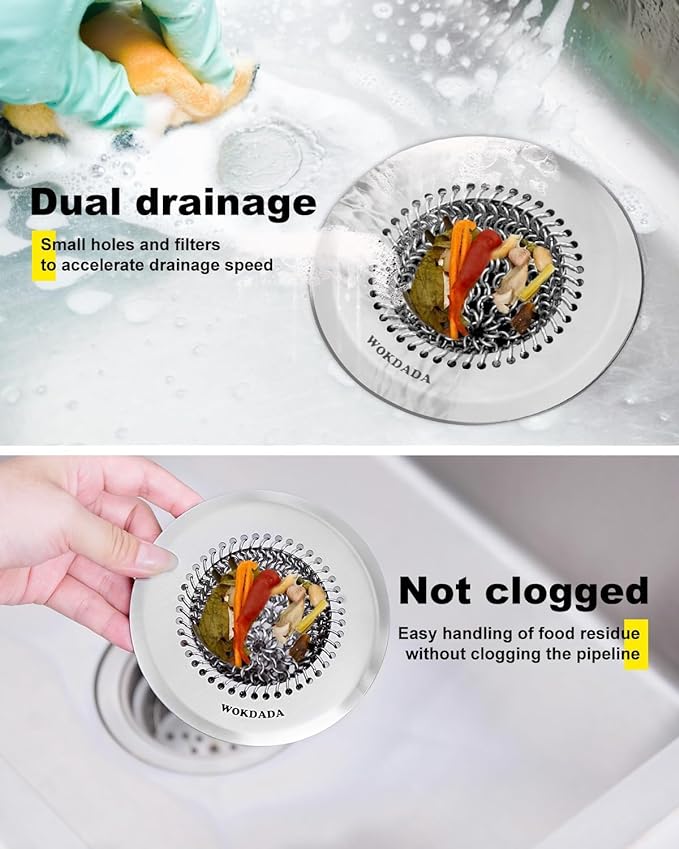 Sink Drain Strainer, Reversible Mesh Sink Strainer with 304 Stainless Steel, Wokdada Revolutionary Anti-Rust Kitchen Sink Strainer Food Catcher for Garbage Disposal Without Clogging