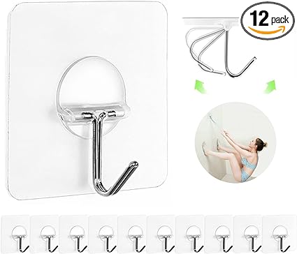 Adhesive Hooks for Hanging Heavy Duty Wall Hooks Self Adhesive Towel Coat Hooks Waterproof Transparent Hooks for Bathroom Shower Kitchen Keys Door Outdoor Home Improvement Utility Hook 12 Pack