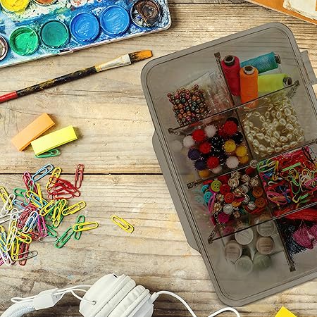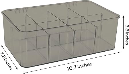 PARTITIONED TEA BAG ORGANIZERS – These 8 generously sized sections storage organizers measure 27.2 x 18.4 x 9.7 cm each. An ideal choice to store, organize and separate tea bags, pepper packets, sugar, salt, sweeteners, coffee pods, stirring sticks, water flavorings, and other beverages. DURABLE AND TRANSPARENT CONSTRUCTION - Made of high quality and durable BPA-free, shatter-resistant plastic to endure years of usage. The transparent design ensures the visibility of stored items helping you to swiftly grab what you want. STACKABLE DESIGN: Each container features a covering lid that makes it convenient to stack the organizers to maximize storage capacity in the kitchen or pantry. The hinges allow easy opening of the container to grab things instantly. MULTI-FUNCTIONAL –Extremely versatile to use. Use it as a pantry organizer to clear away the kitchen tops. Store your hair and makeup accessories. At the office, store your stationery items and other essentials. CARE INSTRUCTIONS – Wipe it clean with a damp cloth or hand wash with a light detergent and water. Avoid putting it in the dishwasher.