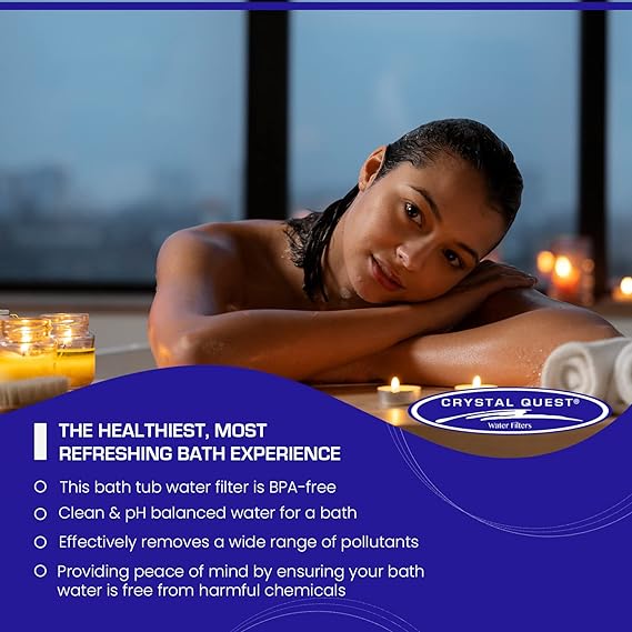 ???????????????????? Fresh, Filtered & ???????????????????? ???????????????? ????????????????????: Crystal Quest’s innovative bath water filter effectively reduces or removes additives or man made chemicals including but not limited to chlorine, chloramine and their byptoducts, providing a rejuvenating and enjoyable bathing experience. It reduces contaminants, ensuring clean & pH balanced water for a refreshing and soothing bath. ???????????????????????????????????????? & ????????????????????????????????????: This tap water filter is a cost-effective solution with 2,500 gallons of filtration lifespan* before requiring replacement. It offers long-lasting protection against harmful impurities, making it an excellent investment for any home. ???????????????? ???????? ????????????????????????????: This innovative bath water filter is effortless to install and requires no additional tools or equipment. It can fit seamlessly onto most standard bathtub faucets, making it a convenient addition to any bathroom. Includes two types of handles (standard & flexible) to accommodate various faucet designs. ???????????????????????? ????????????????????????????????????: Our bathtub filter offers a seamless and versatile solution to remove impurities from the bathwater. It fits most tubs but is not universal and cleans water at any temperature for a year-round rejuvenating and pure bath experience. Kindly check whether the product is compatible with you tub or not before buying. If it does not fit after you have purchased it please return it to us and get apply for price back. ????????????-???????????????? ???????????????????????????? ????????????????????: This bath tub water filter is BPA-free, providing peace of mind by ensuring your bath water is free from harmful chemicals. It allows you to unwind and relax without being concerned about potentially harmful contaminants.