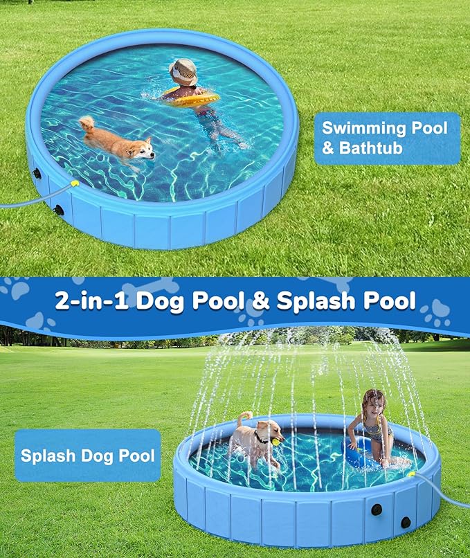 EPN Large Foldable Dog Pool, 0.55 MM PVC Portable 2-in-1 Heavy Duty Pet Pool Bathtub Dog Sprinkler Pool with Non-Slip Bottom, Outdoor Summer Water Toy for Dog, Cat, Kids (79'')